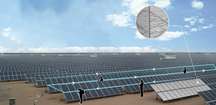組串式EL檢測儀應(yīng)用于光伏電站的全檢項(xiàng)目,可通過組串式支路上電,來增加大規(guī)模檢測速度與效率,搭配組串相機(jī),可實(shí)現(xiàn)組串上電組串檢測的高效測試模式。是屋頂分布式電站與水面電站集中式地面電站快速檢測的最佳方案