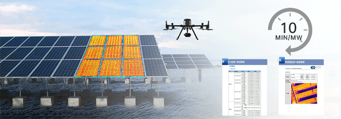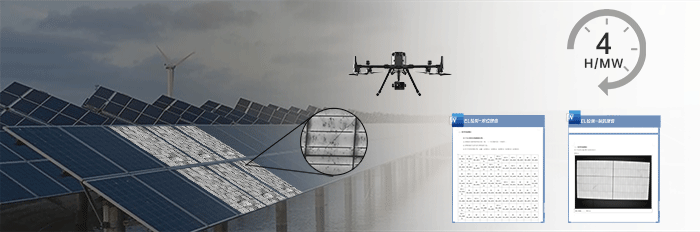 無人機EL巡檢服務應用于光伏電池板的內部隱裂大面積檢測。可快速完成光伏電站電池板的全檢工作 效率 4h=1mw、檢測完成后通過Ai識別完成內部缺陷的識別與報告生成交付。